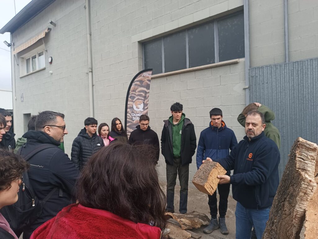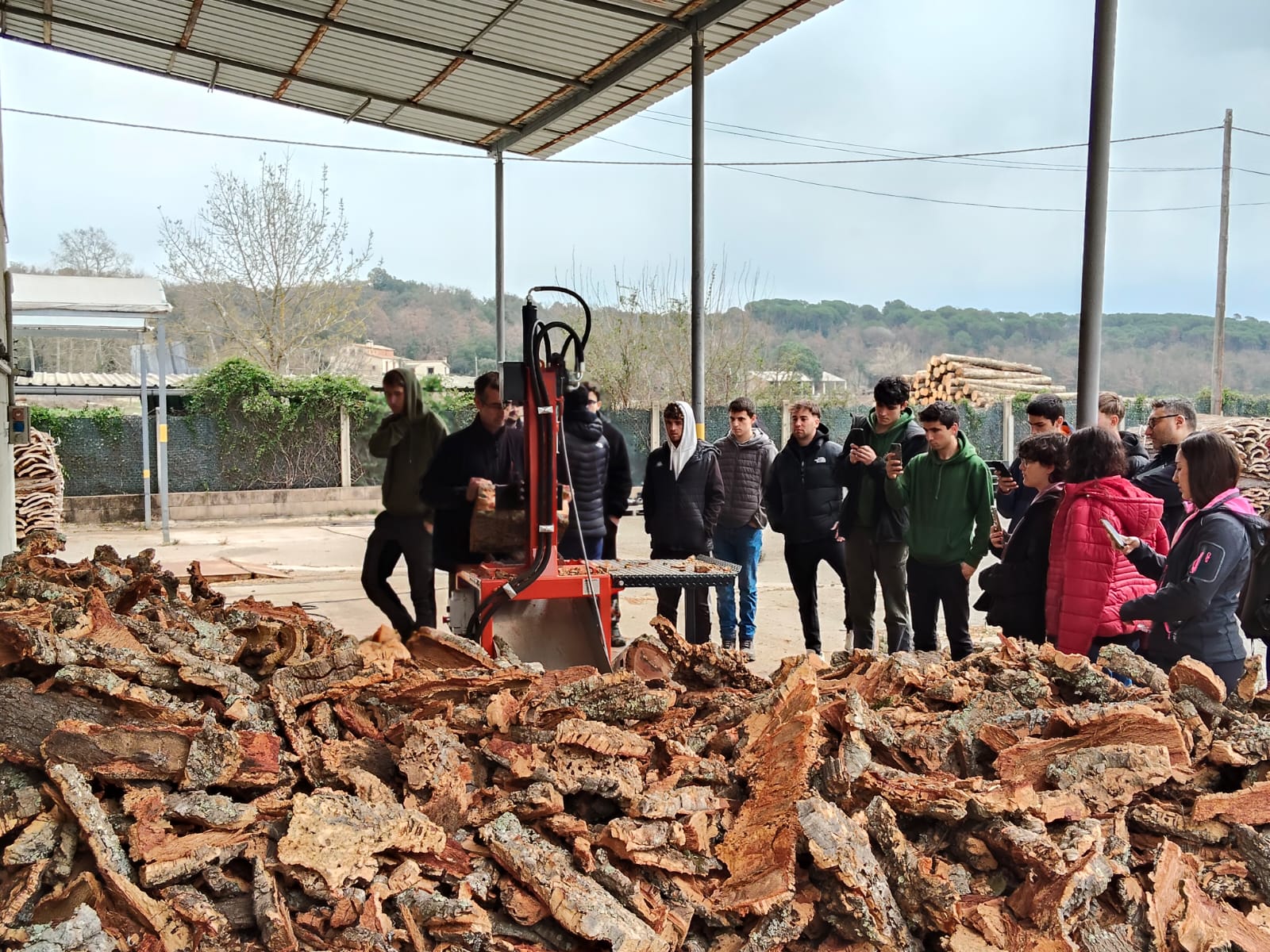 La visita ha començat amb un recorregut per una sureda, on els estudiants han pogut veure sobre el terreny com es gestiona aquest tipus de bosc i entendre el valor del suro des del seu origen. Durant la sortida, el Consorci Forestal de Catalunya i la Cooperativa Forestal han explicat als alumnes els criteris de gestió de la sureda i la importància dels treballs forestals per obtenir suro de qualitat.